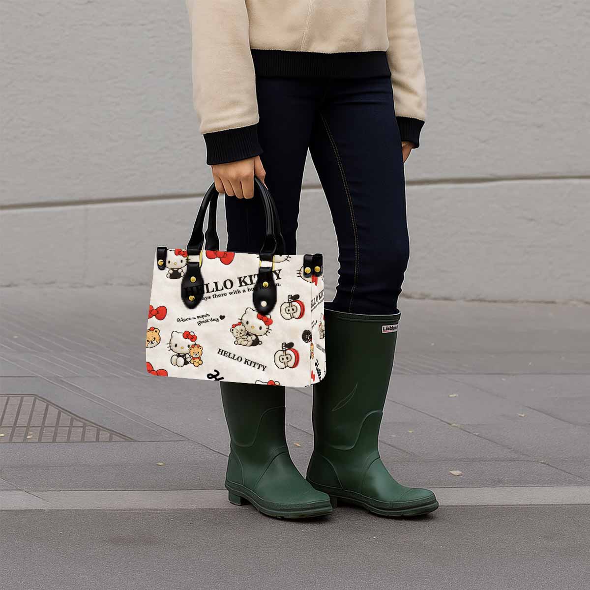 Hello Kitty Fluffy Plush Women Tote Bag with Black Handles